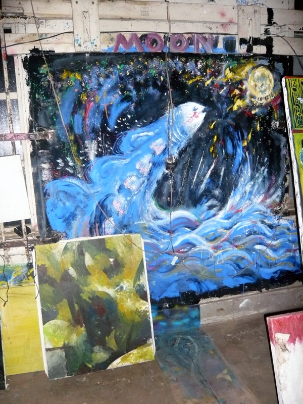 壁や床にも絵が描いてあり、アトリエ自体が一つの作品になっています。
